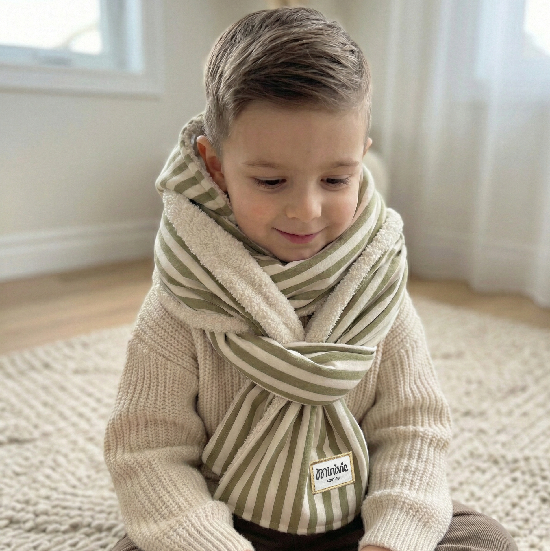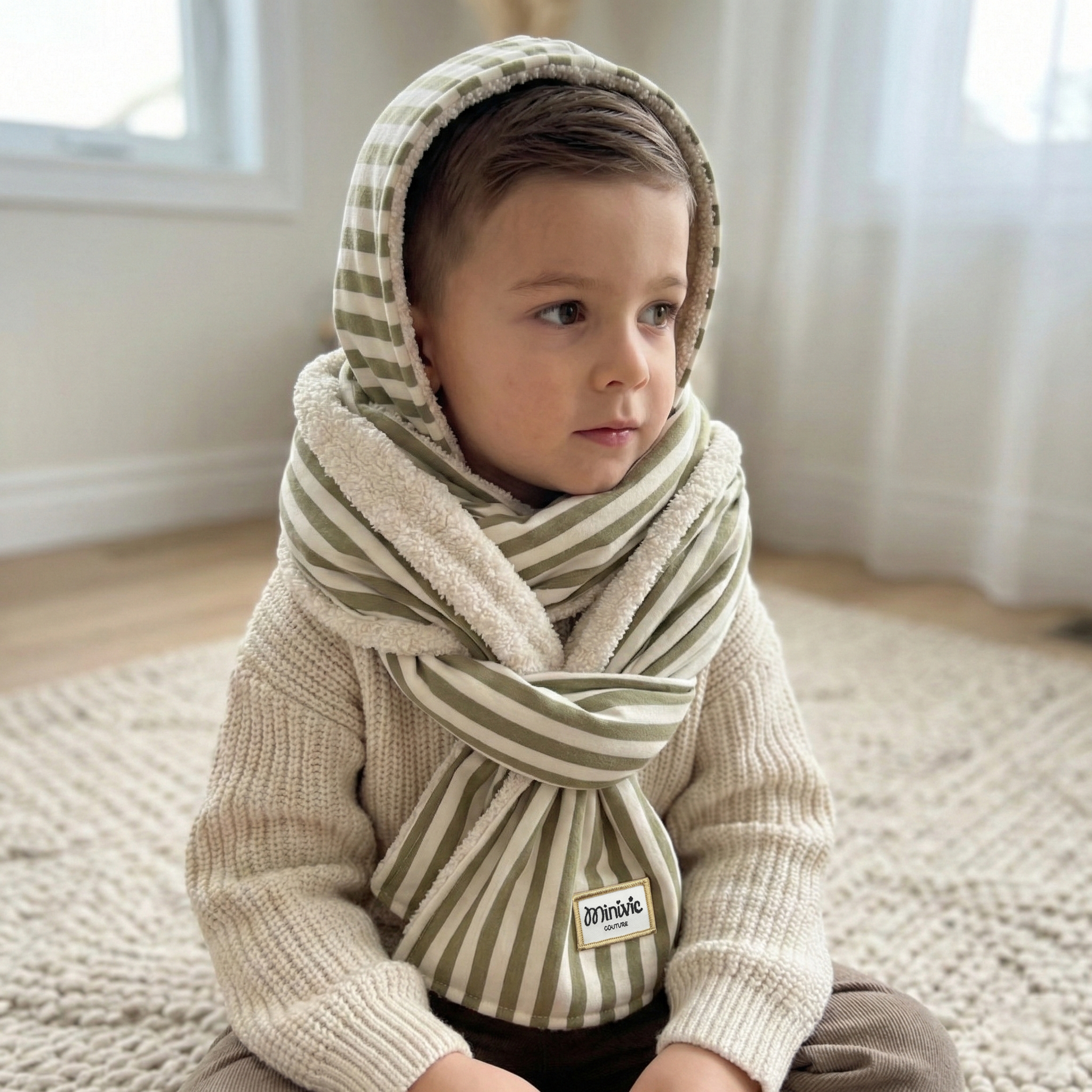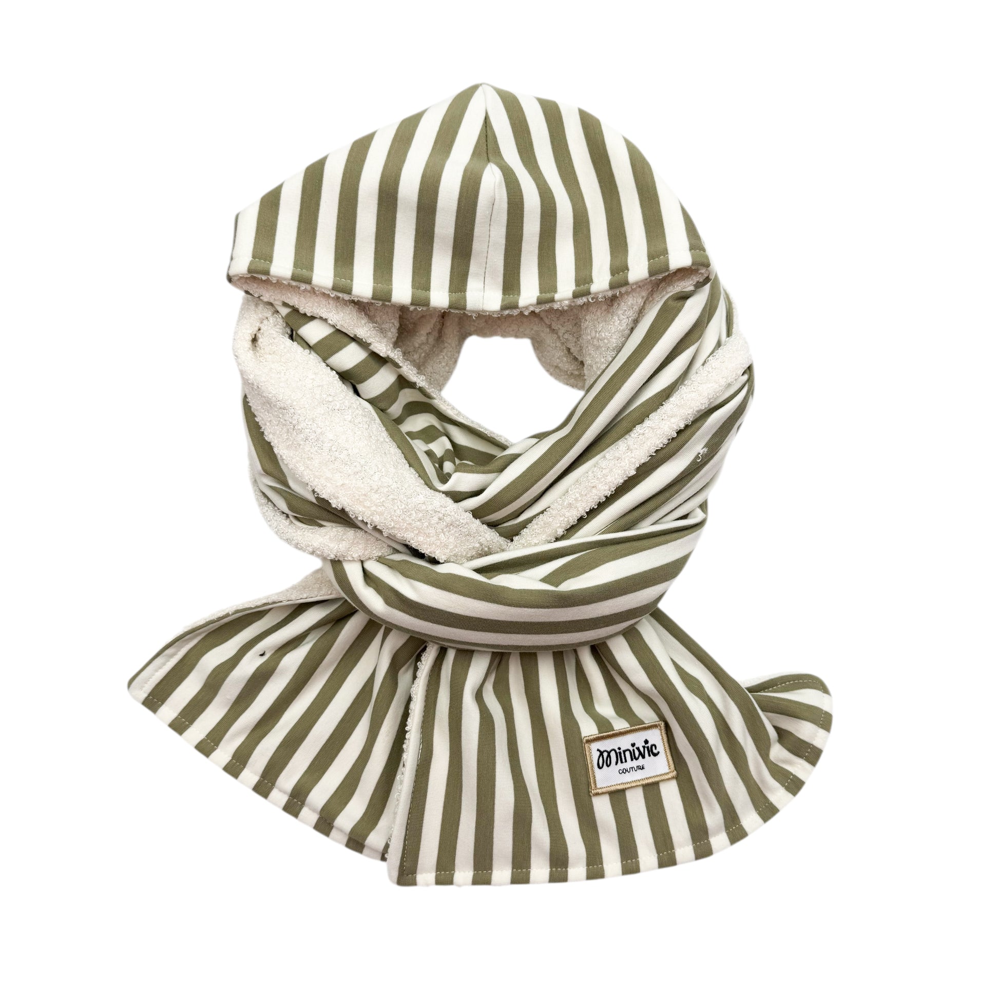 Les écharpes à capuche MINIVIC sont fabriquées à la main avec beaucoup d’amour et de soin. Leur secret ? Une capuche intégrée directement à l’écharpe, comme un petit sweat à capuche d’hiver trop chouette à porter.